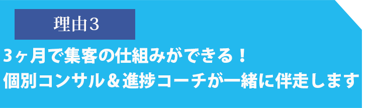 他の集客講座やビジネス塾のように1対多数ではなく、講師との個別コンサルにより、あなたと一緒に仕組み化を作り上げます。