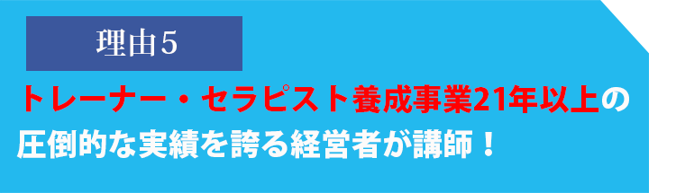 2000年~21年間に渡りトレーナー、セラピストの養成事業に一貫して携わる。