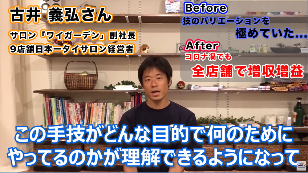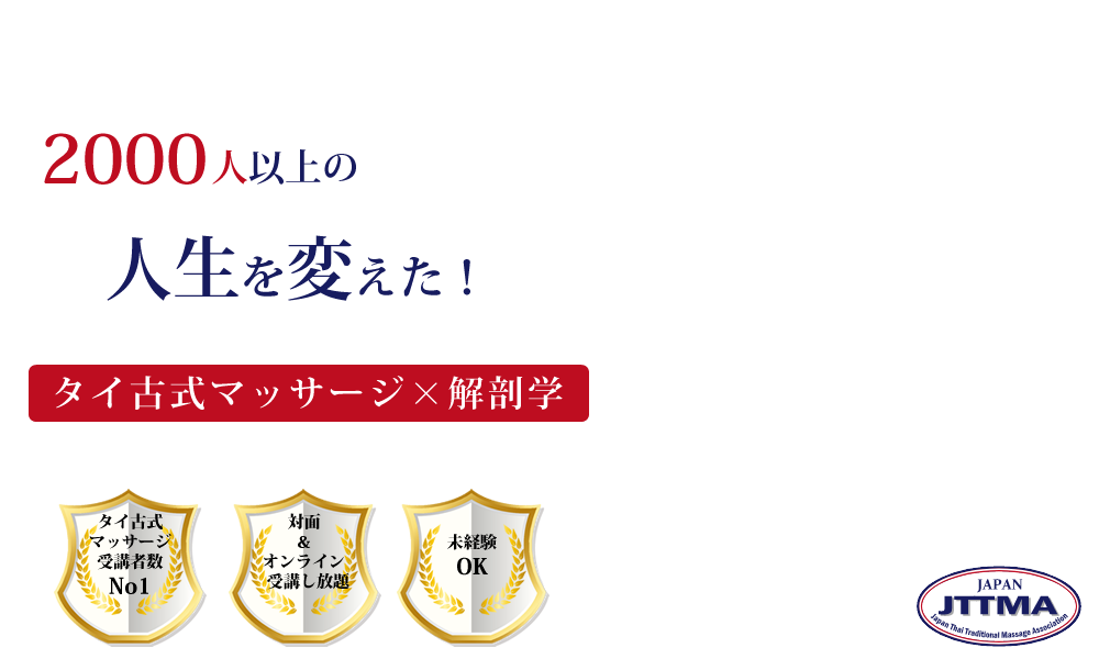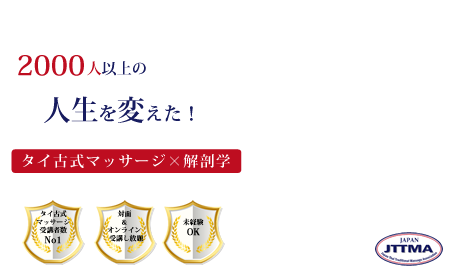 タイ古式マッサージ伝統の東洋医学に基づいた施術方法と西洋医学の基盤となる体の専門知識を理解した上で正しくお客様に施術技術、セラピストとしての基本的な心構え、成功するための考え方まで網羅された内容となっております。