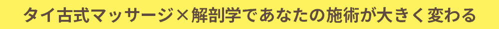 適切な施術のためには、高いテクニカルスキルが求められます。決められた施術手順を行うセラピーからワンランク上のお客様にあわせた施術を行うには、身体の構造を知り、身体の動きを理解して施術することが大切です。これによりあなたは、お客様の身体の状況に応じたオーダーメイドの施術が可能となり、今まで以上に信頼されるセラピストになることができます。世界中のどのタイ古式マッサージスクールよりも解剖学を理解したタイ古式マッサージセラピストを目指せるプログラムになっています。
